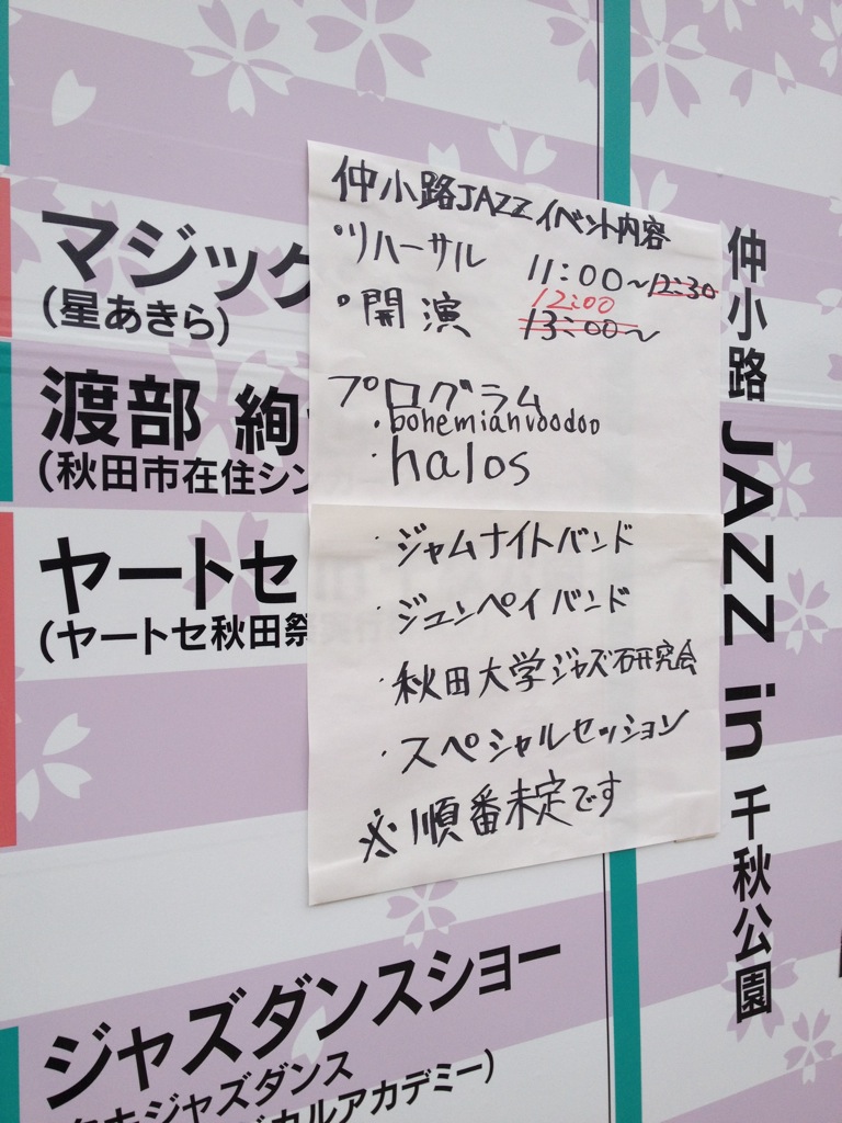 前日に秋田REDHOUSEマスターの芳賀さんより「明日、千秋公園お花見するから時間があったら演奏しない?」と言われ、