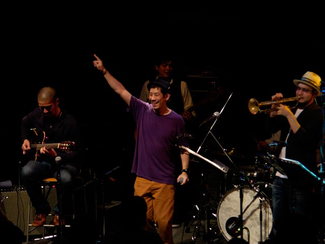 vocalには何かと縁のあるmedbyさん。初めて合わせたんだけど、柔らかな歌とポエトリーリーディングがとてもピースフルな空気で、スッとバンドのサウンドに絡み合う感じ。