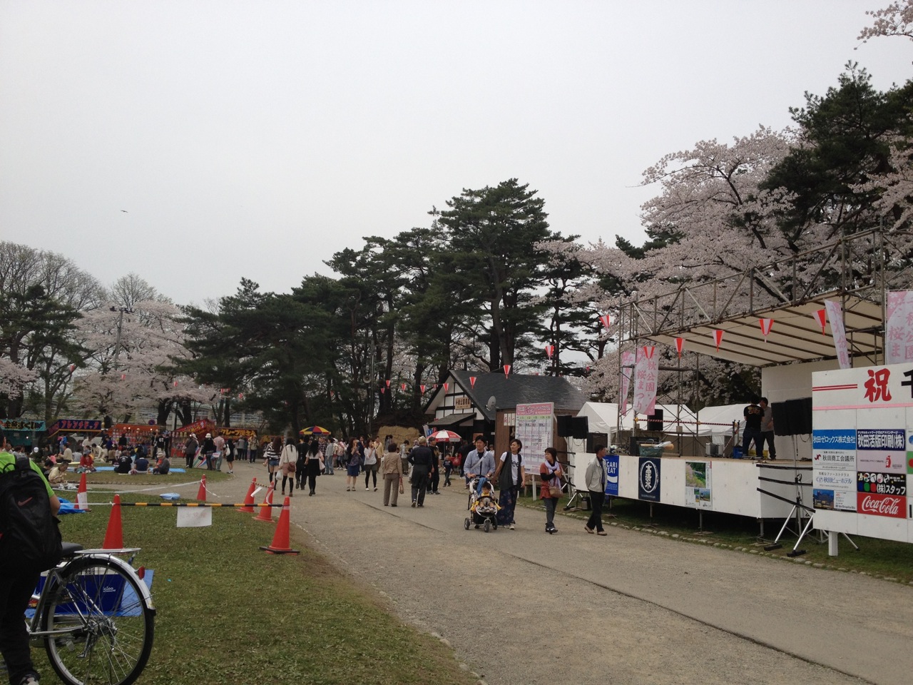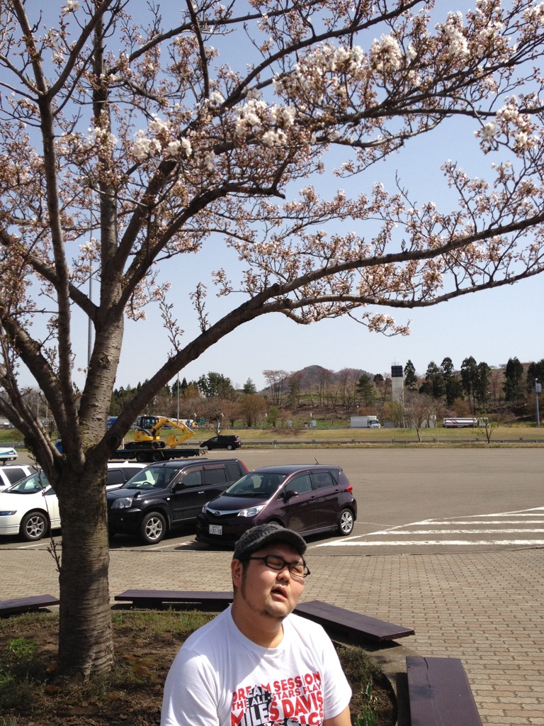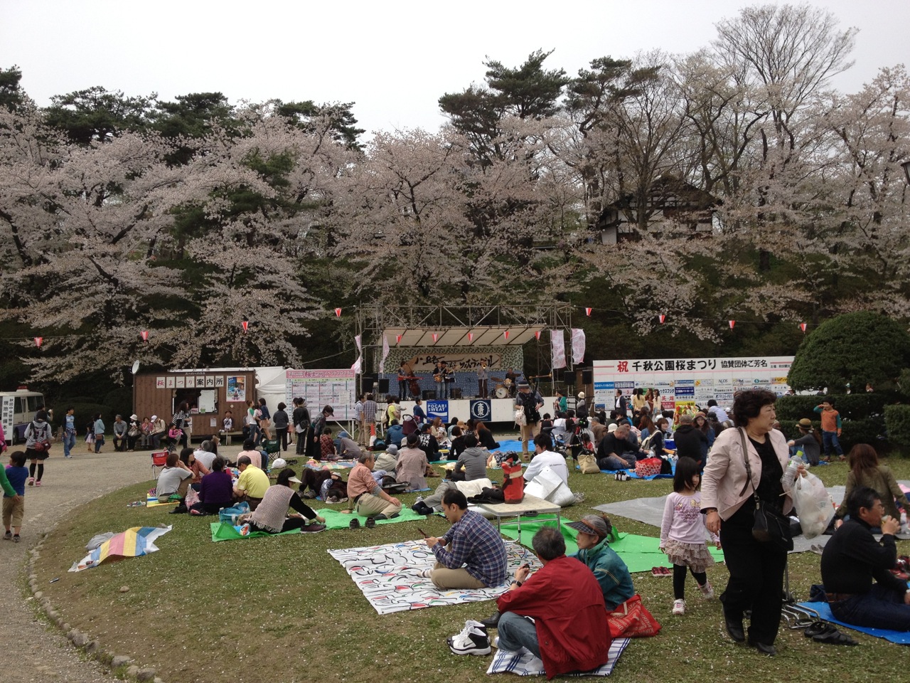 前日に秋田REDHOUSEマスターの芳賀さんより「明日、千秋公園お花見するから時間があったら演奏しない?」と言われ、