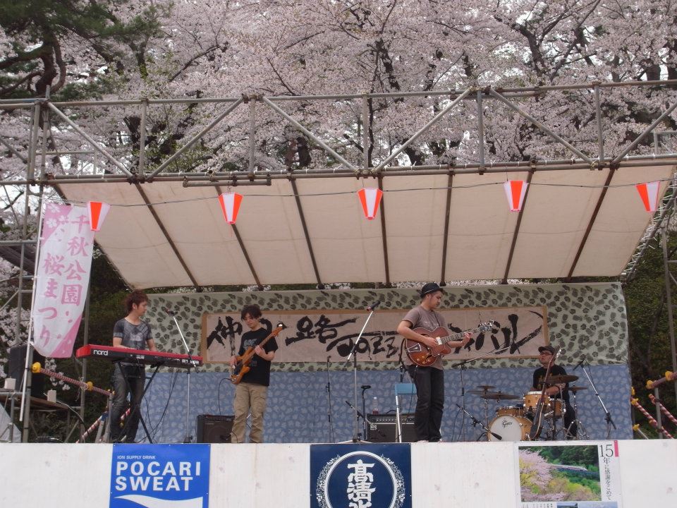 ライブは桜吹雪の舞う中、1時間丸まる気持ちよく演奏させてもらいました!