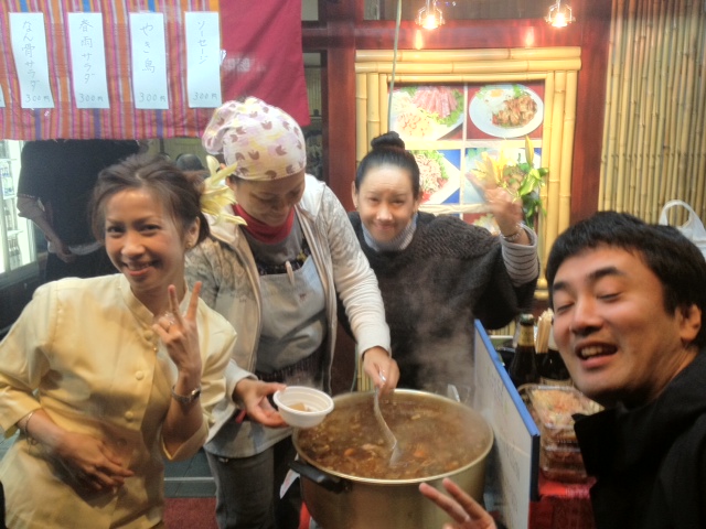 トムヤムスープを出していた、いいテンションの店員さん達!