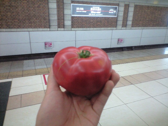 みんなで帰る電車の中、イキオイでこのトマトにかぶりつきたい衝動に駆られましたが、やめときました。